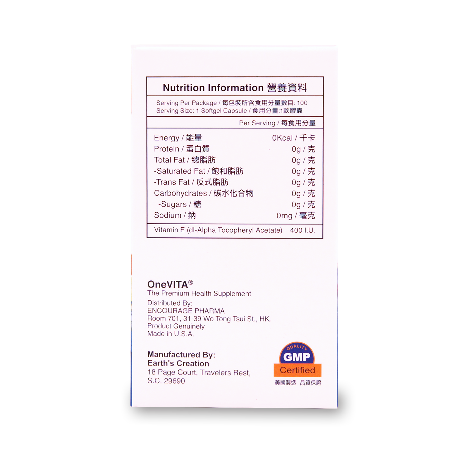 > 能康達維他命E400I.U. 100's Onevita Vitamin E400I.U. Softgels 100's