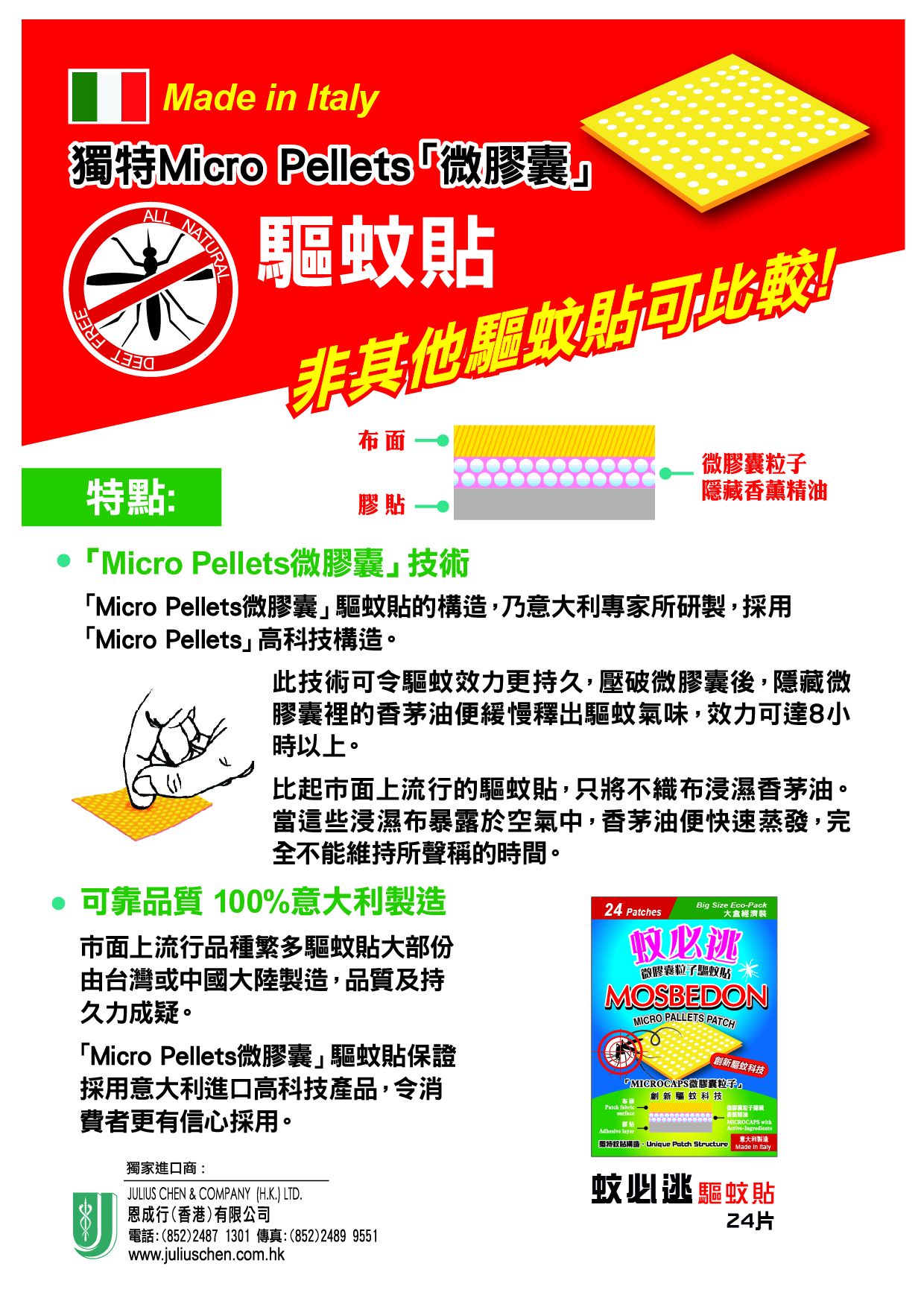 蚊必逃微膠囊粒子驅蚊貼24'S MOSBEDON MICRO PALLETS PATCH 24'S